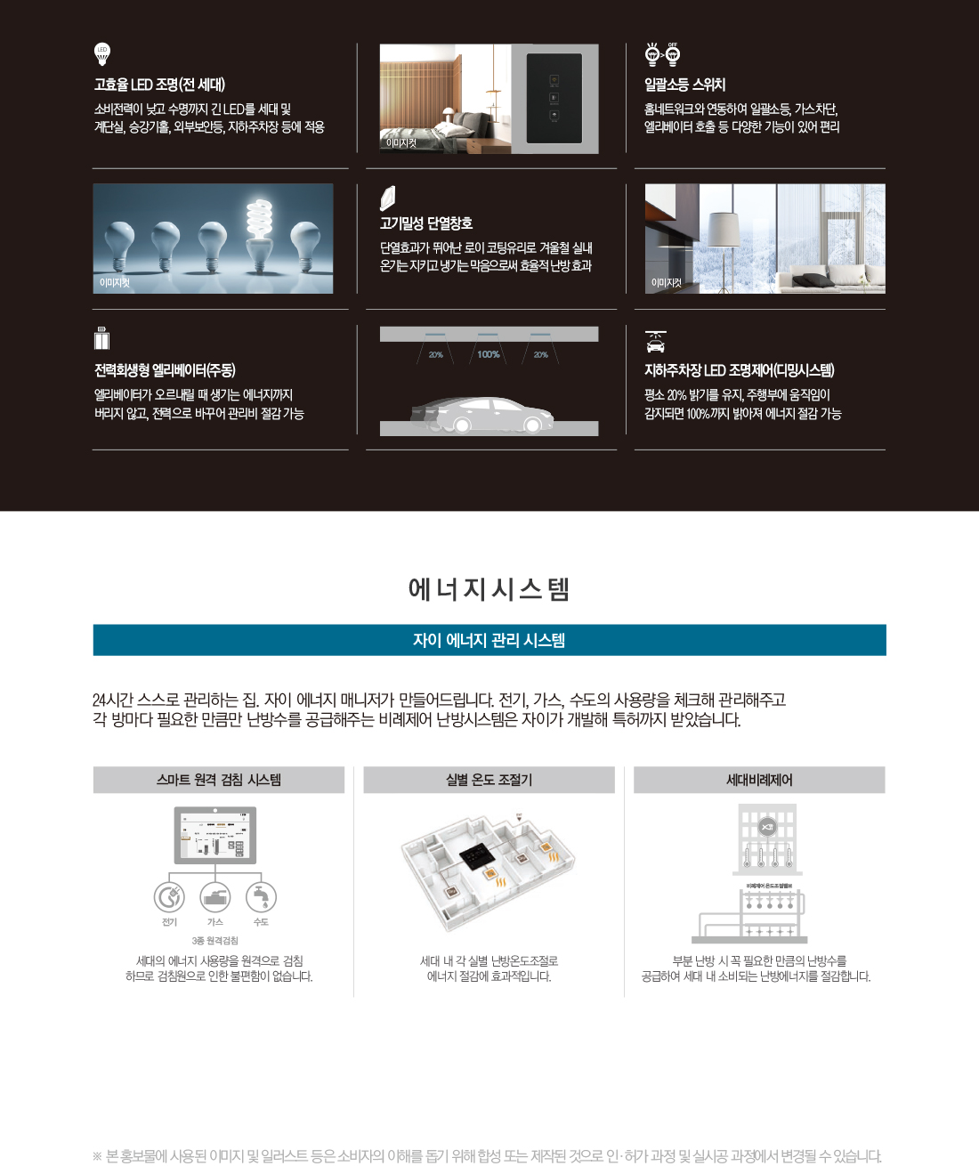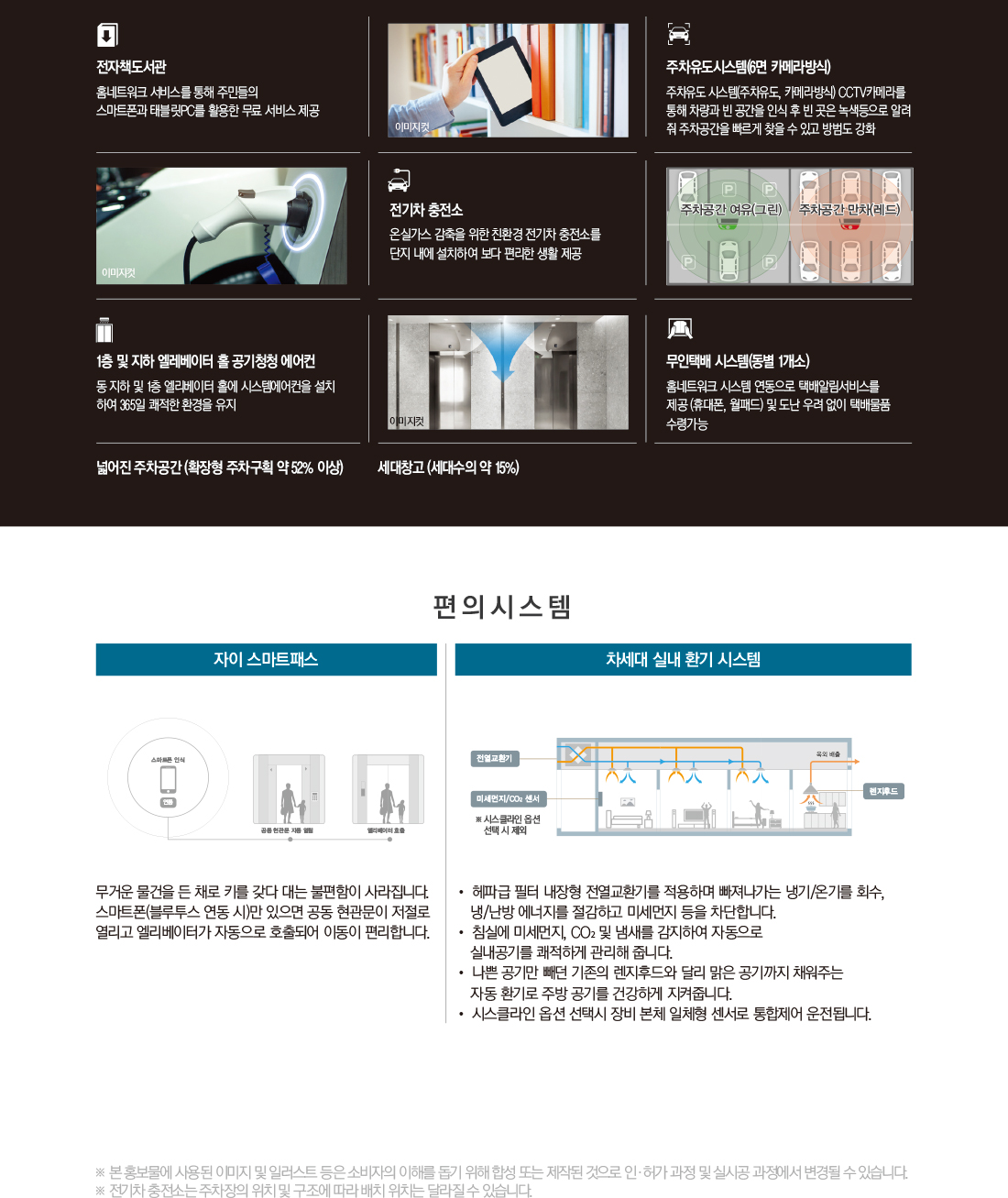 '구미 원호 자이 더 포레' 아파트 단지의 스마트&안전, 에너지, 편의 시스템입니다.