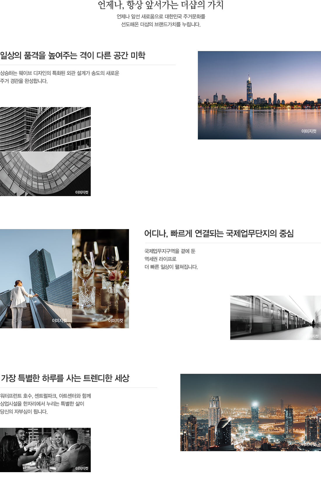 - 워터프런트 호수, 센트럴파크, 아트센터와 함계 상업시설을 한자리에서 누리는 특별한 삶이 당신의 자부심이 됩니다.