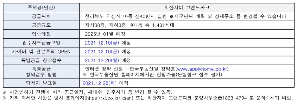 2021년 12월 10일(금요일) 익산 마동 자이 그랜드 파크 입주자 모집 공고 및 사이버 모델하우스 견본 주택을 오픈할 예정입니다.