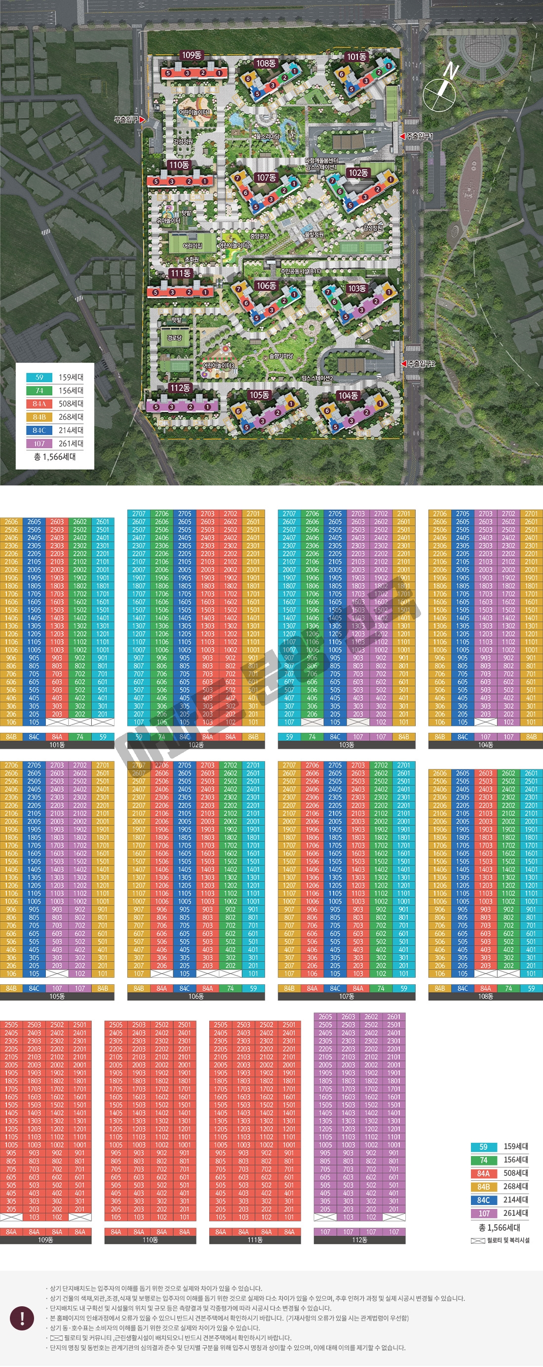 타입 구성은 59㎡ 타입, 74㎡ 타입, 84㎡ A타입, 84㎡ B타입, 84㎡ C타입, 107㎡ 타입으로 구성되어 있습니다.
