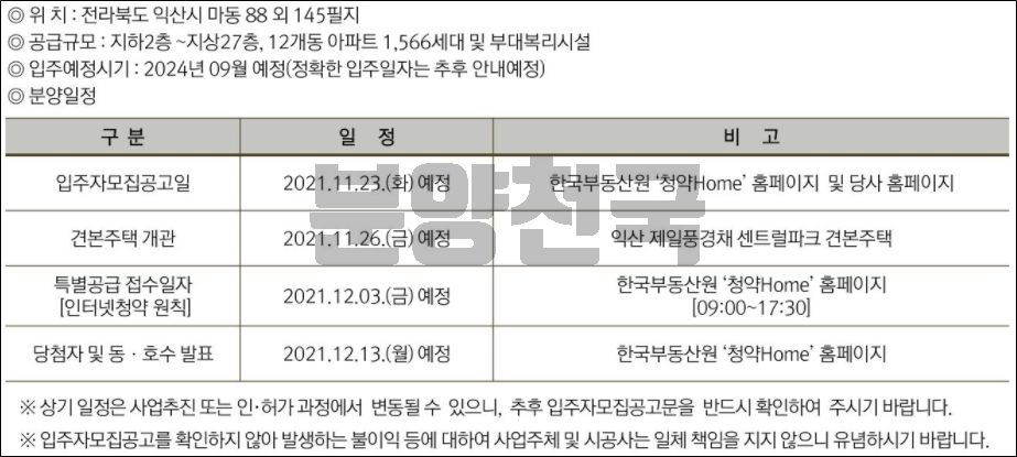 * 익산 제일풍경채 센트럴 파크 아파트 변경된 분양 일정은 본 게시글 하단부에 첨부하였습니다.