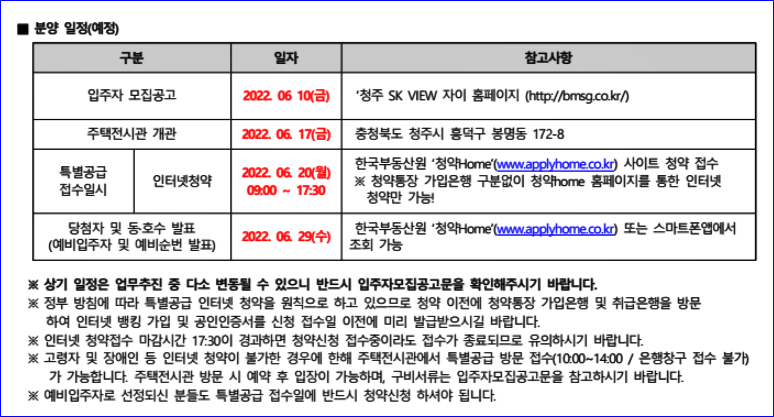 청주 봉명 SK뷰 자이 분양 정보 · 분양 일정